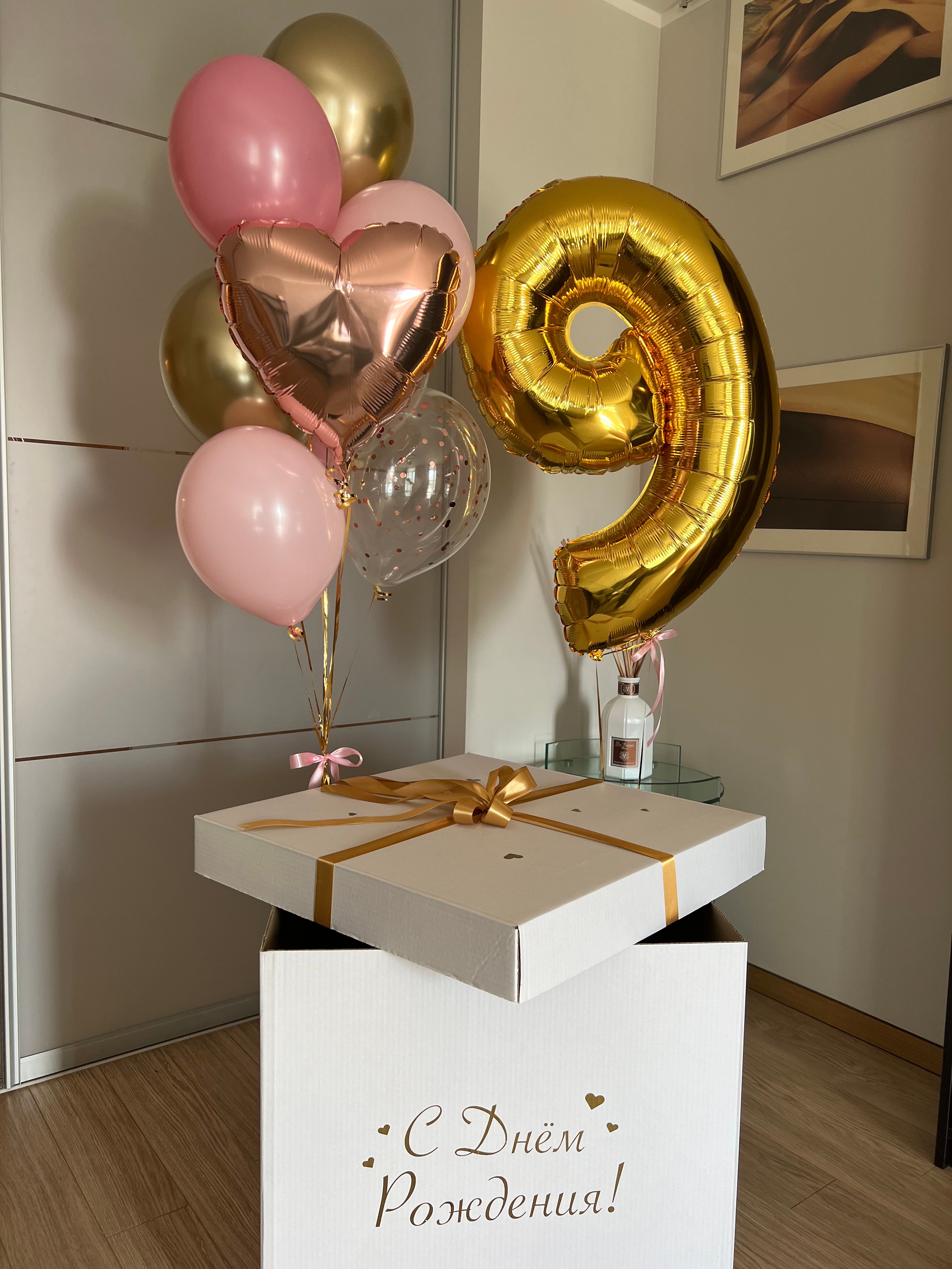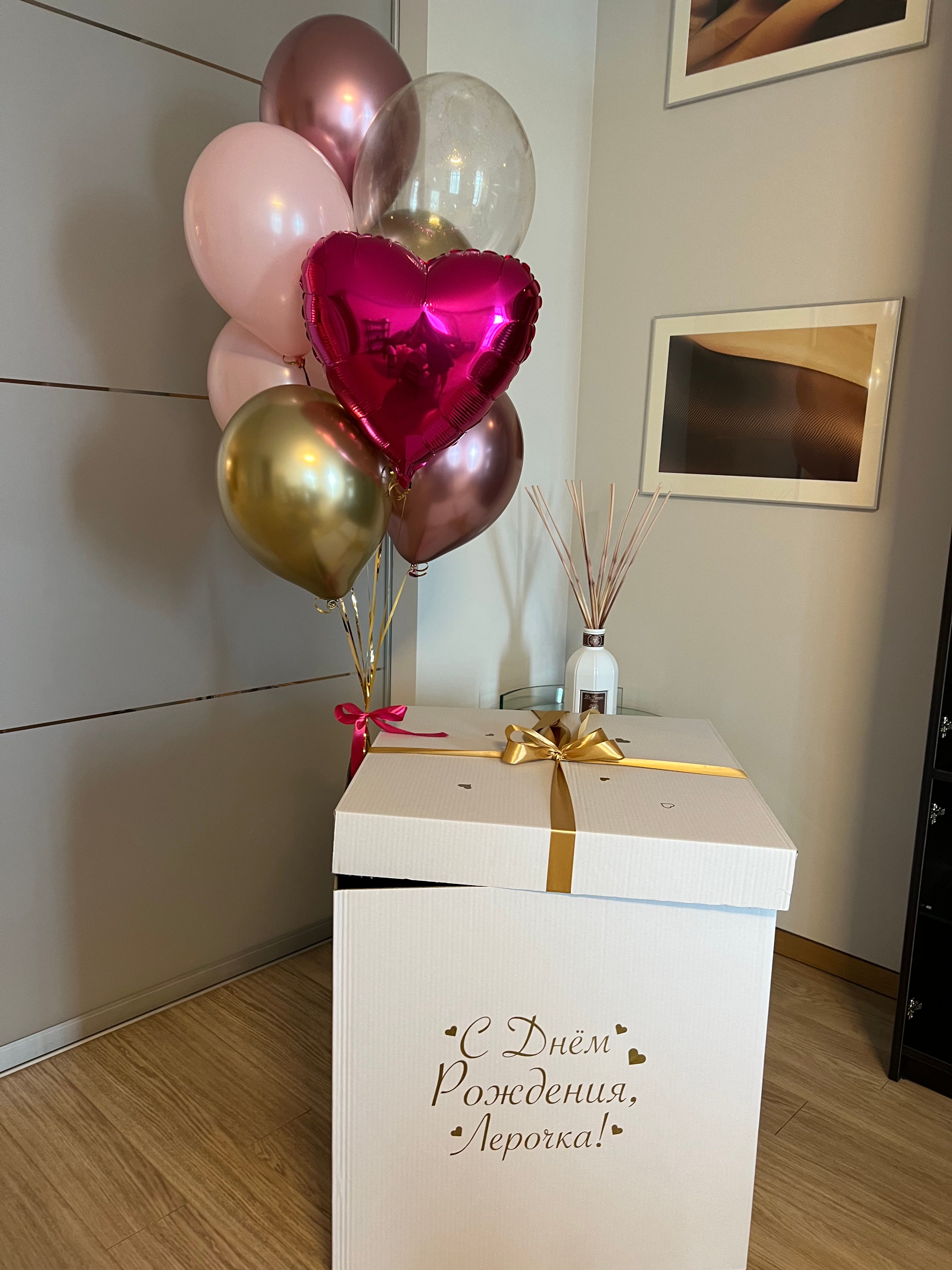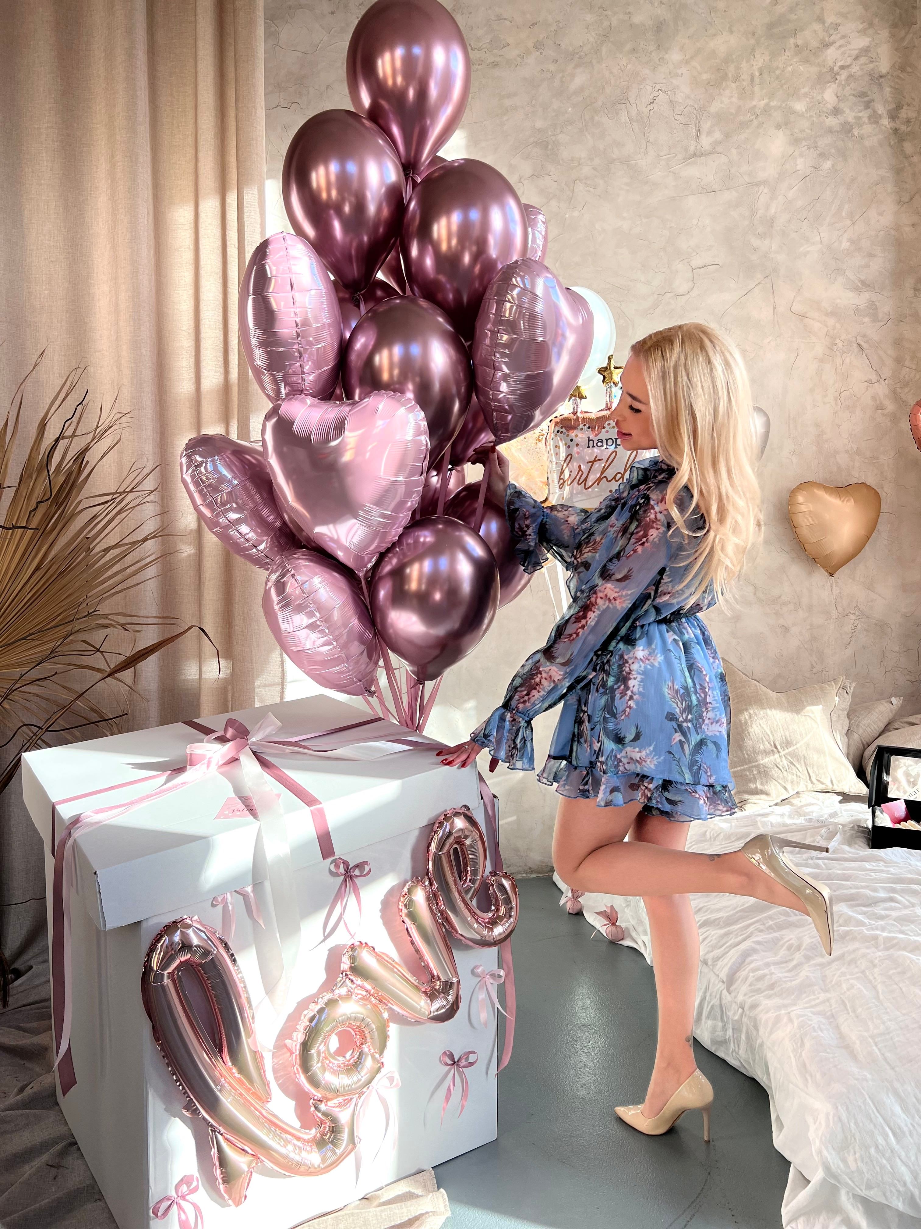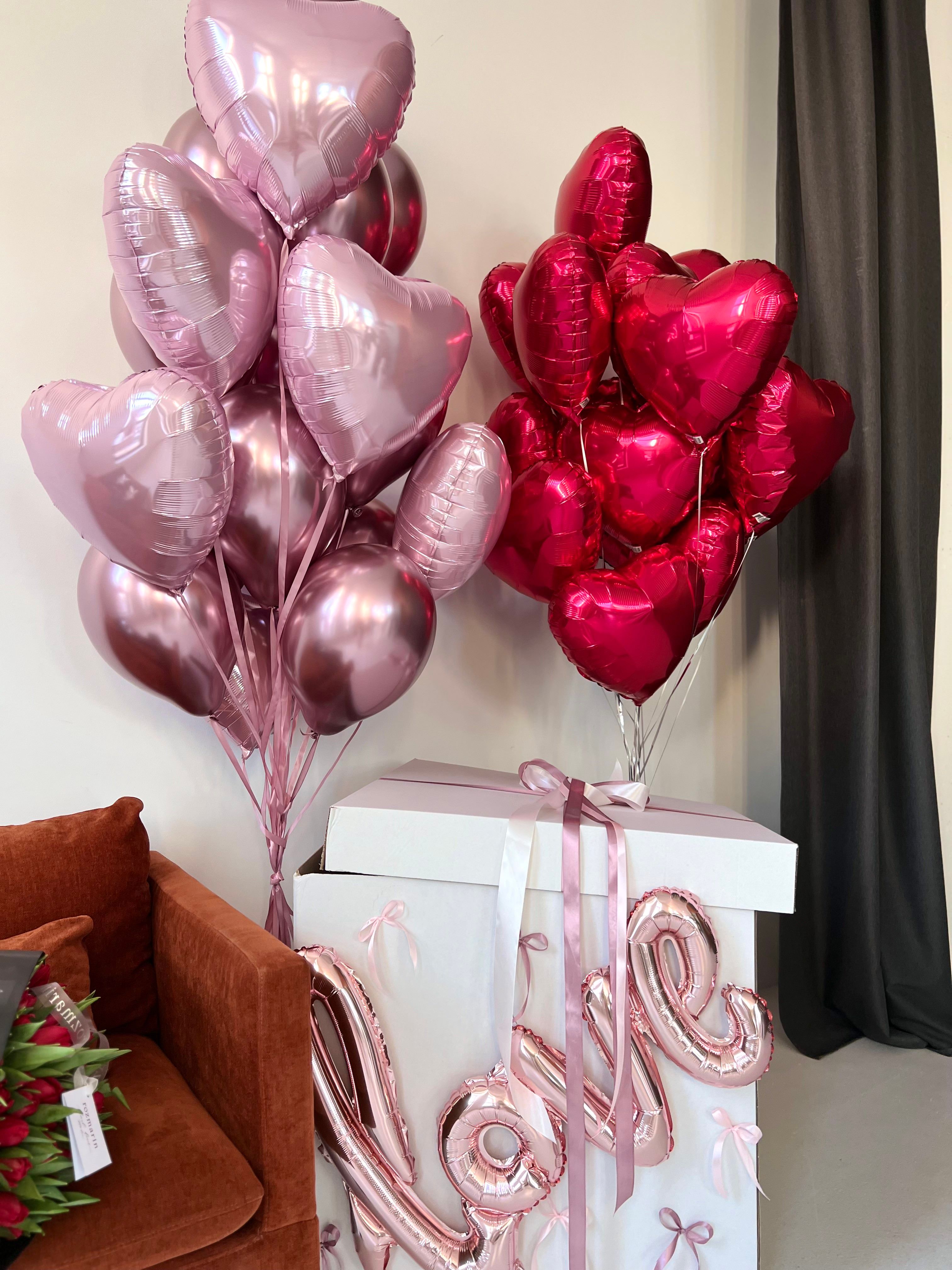 Коробка love с розовыми шарами